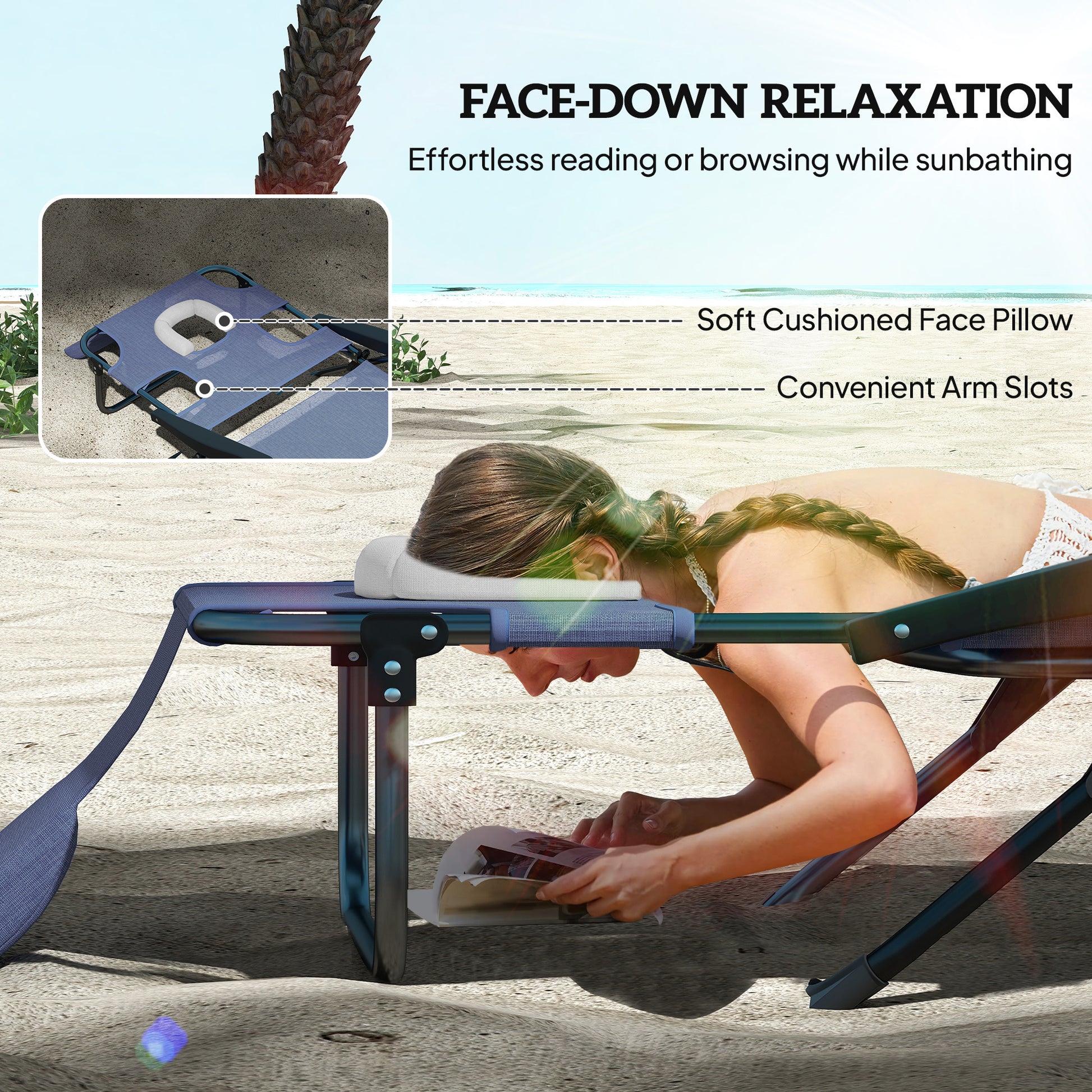 - - Back reclines to 4 different positions to find a great tanning angle