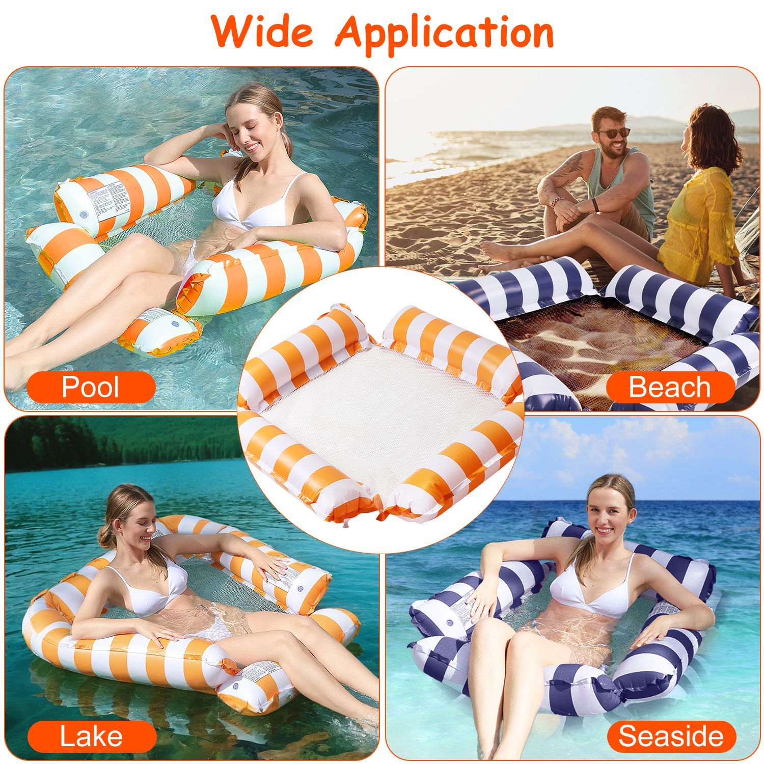 - *High Buoyancy Pillow & Cooling Mesh*: The 2 adult inflatable hammock floats features high buoyancy pillows that are connected to a soft cooling mesh, providing great support for heavy-duty bodies no matter how you move or adjust. You can freely change positions on the pool floats, relax, and entertain yourself in the swimming pool.